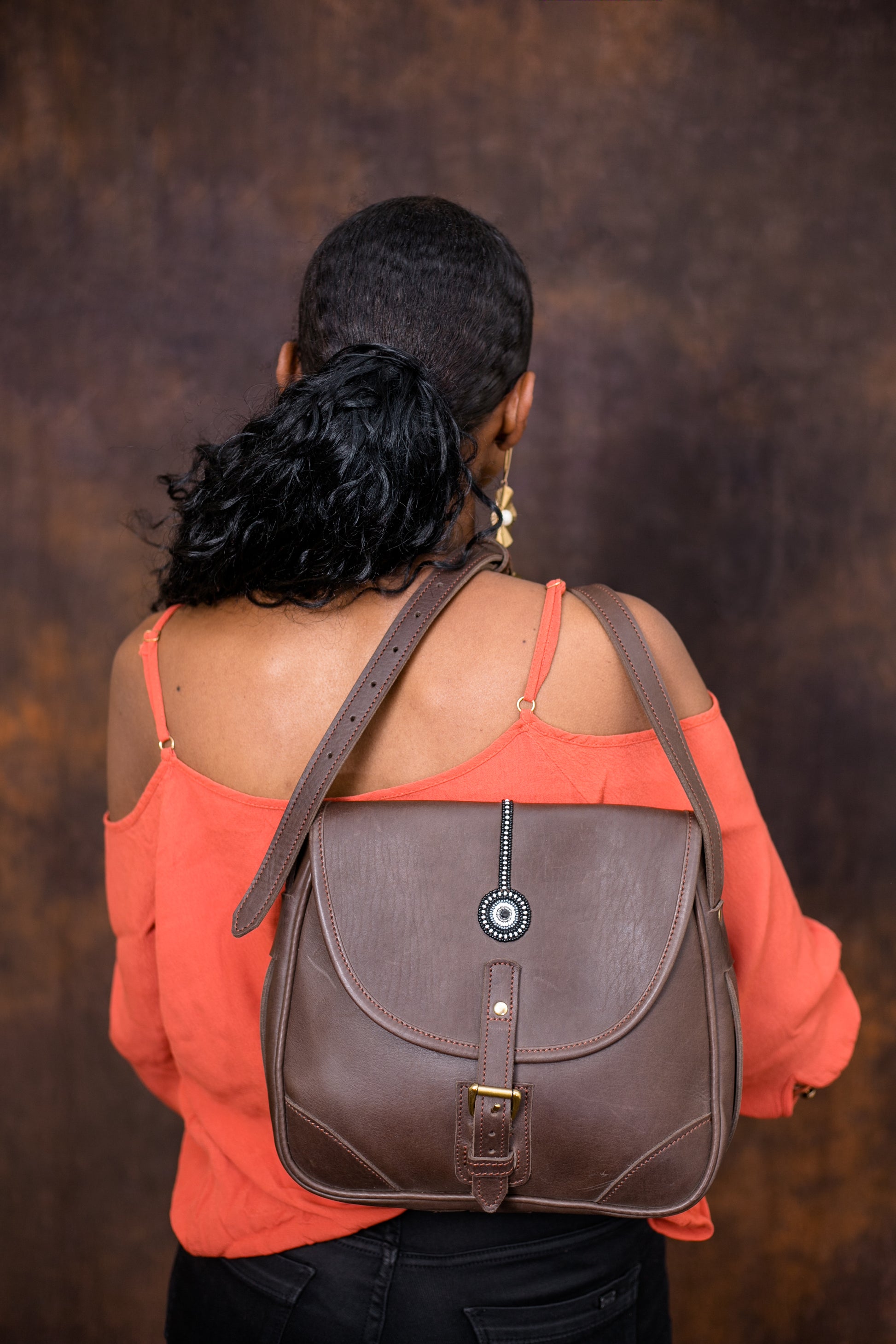 This handmade African leather handbag for women is stylish, comfortable and durable. Our lightweight designs enable you to travel light and while staying stylish. Made from 100% leather with smooth accents, this handbag features structured top handles and an adjustable shoulder strap for added versatility.