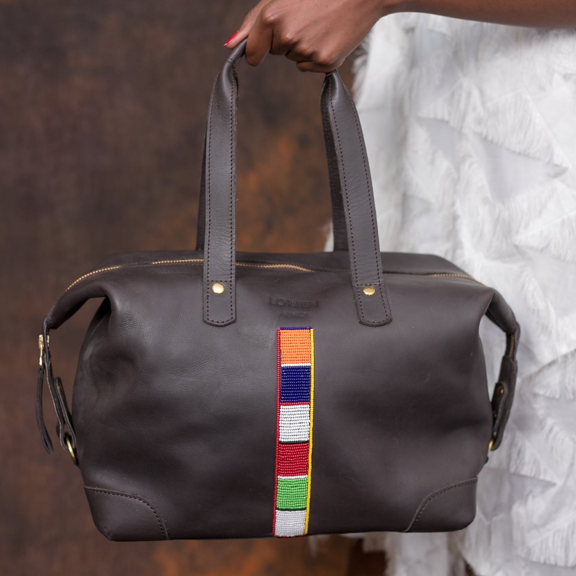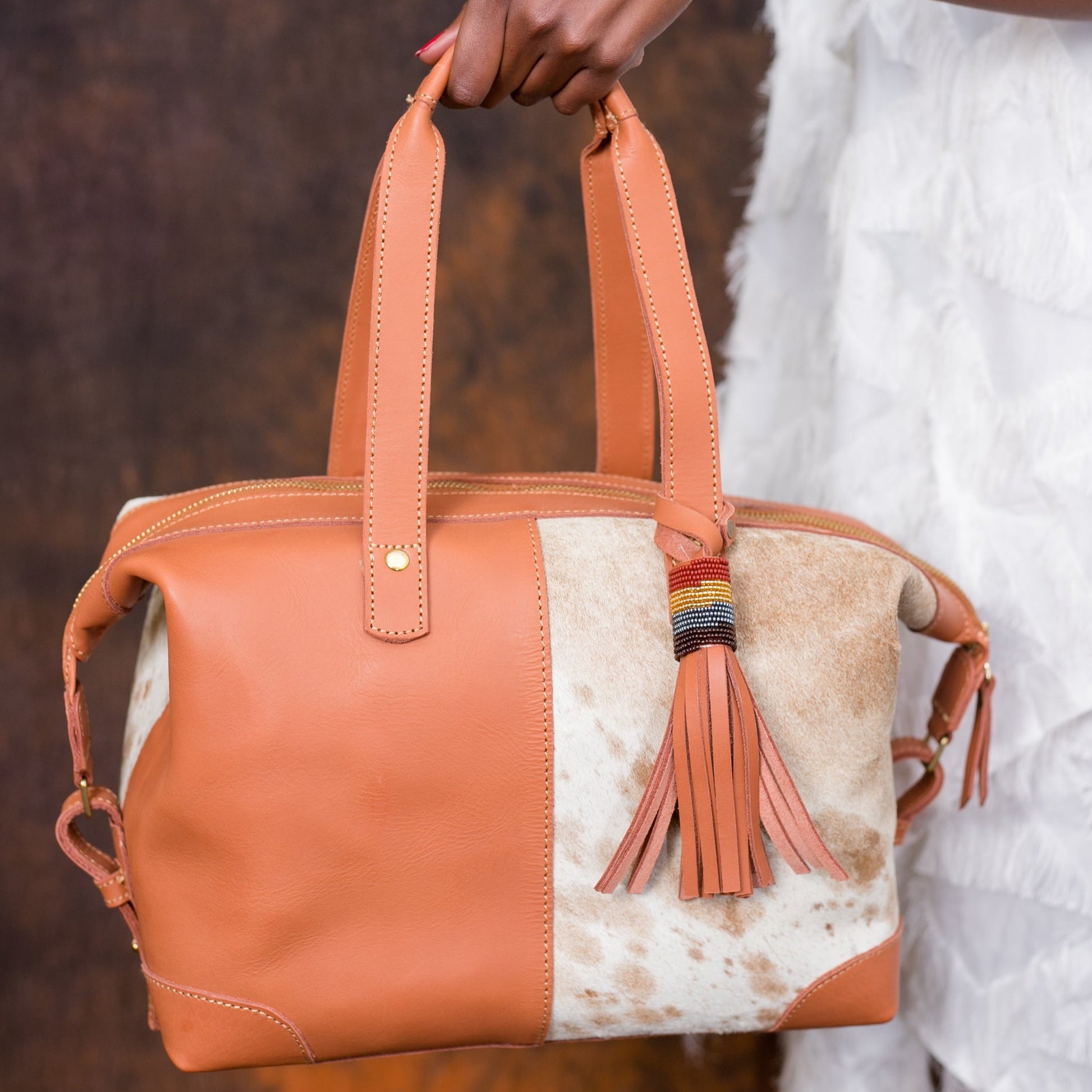 The Leather Bag is made from Top Grain Pull-Up Leather obtained from Free Grazing Maasai Cattle that are primarily bred for Beef; leather is a secondary by-product. Leather may exhibit tick marks and scars from thorns and injuries from wild animals