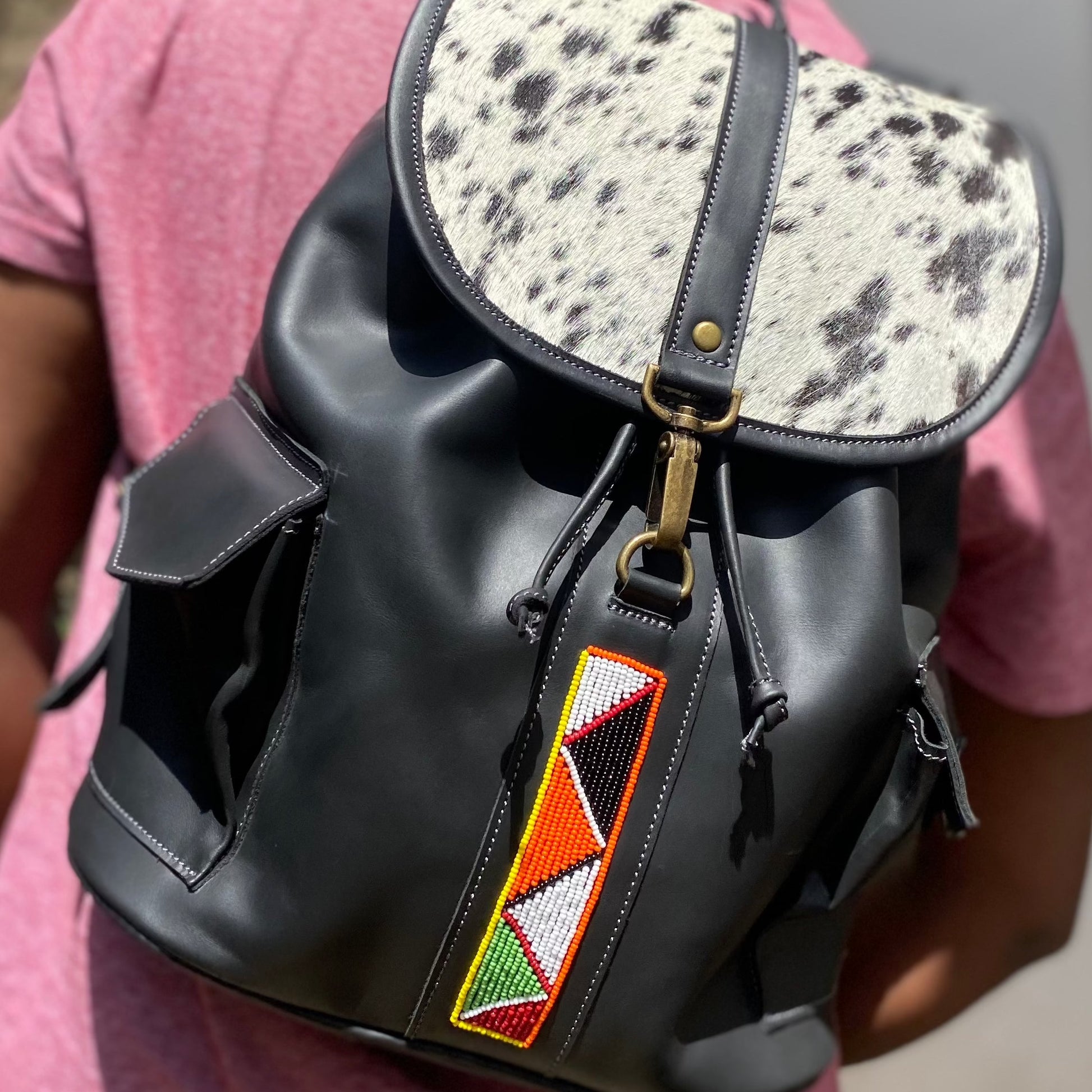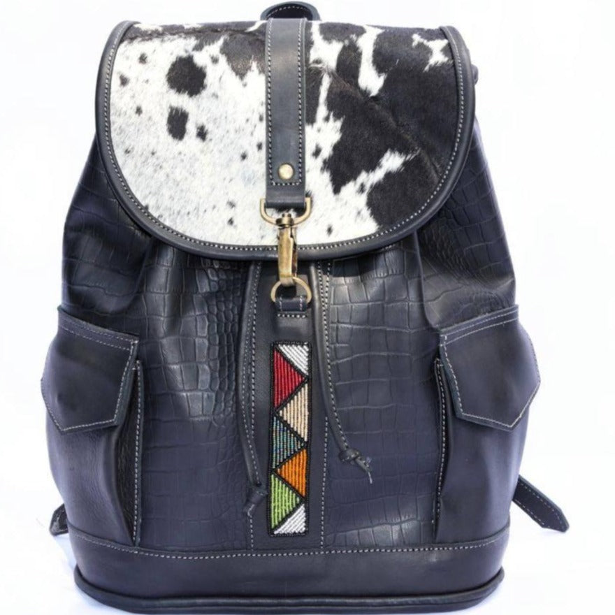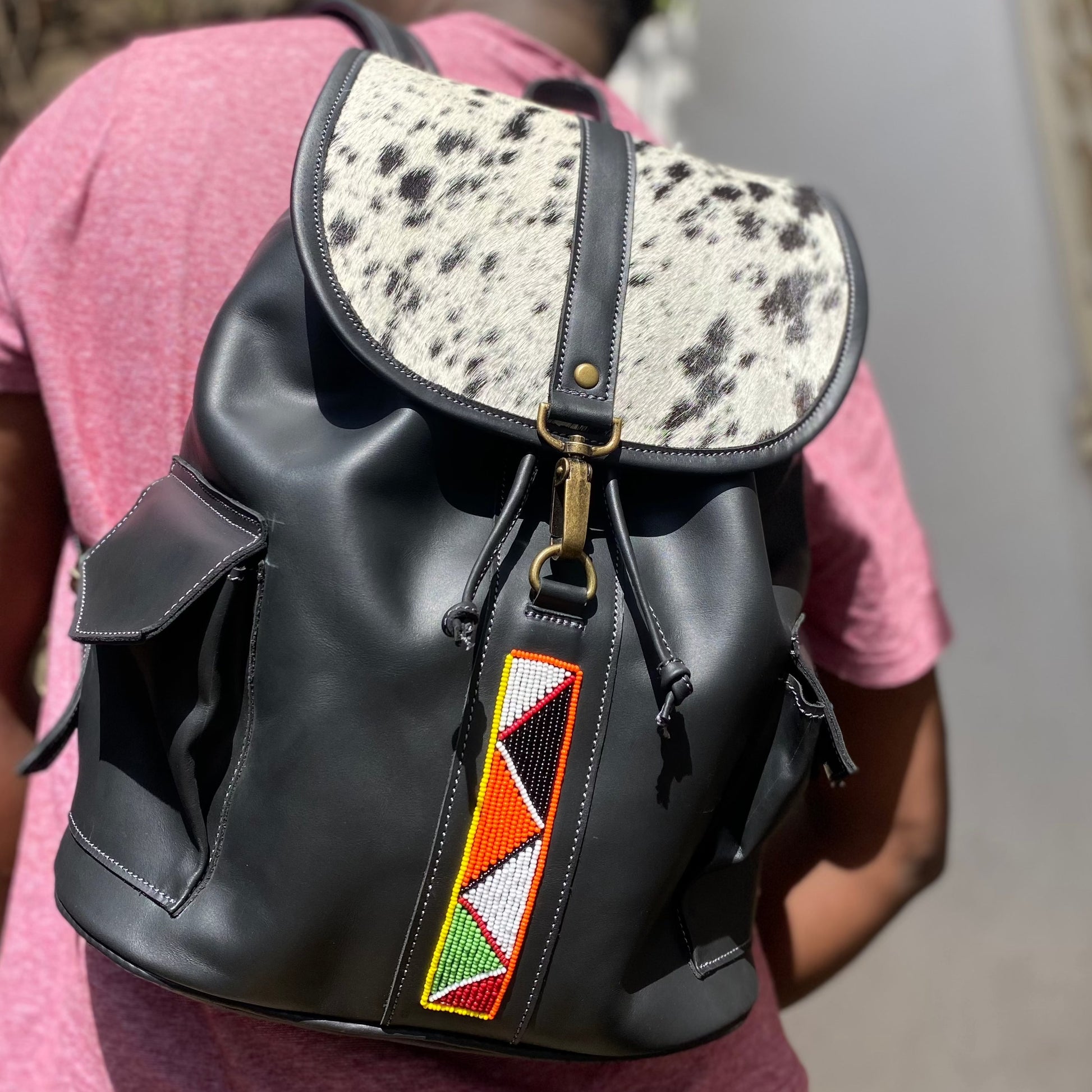 his leather backpack features a dedicated laptop compartment and exquisite beaded details, making it the perfect blend of fashion and function.