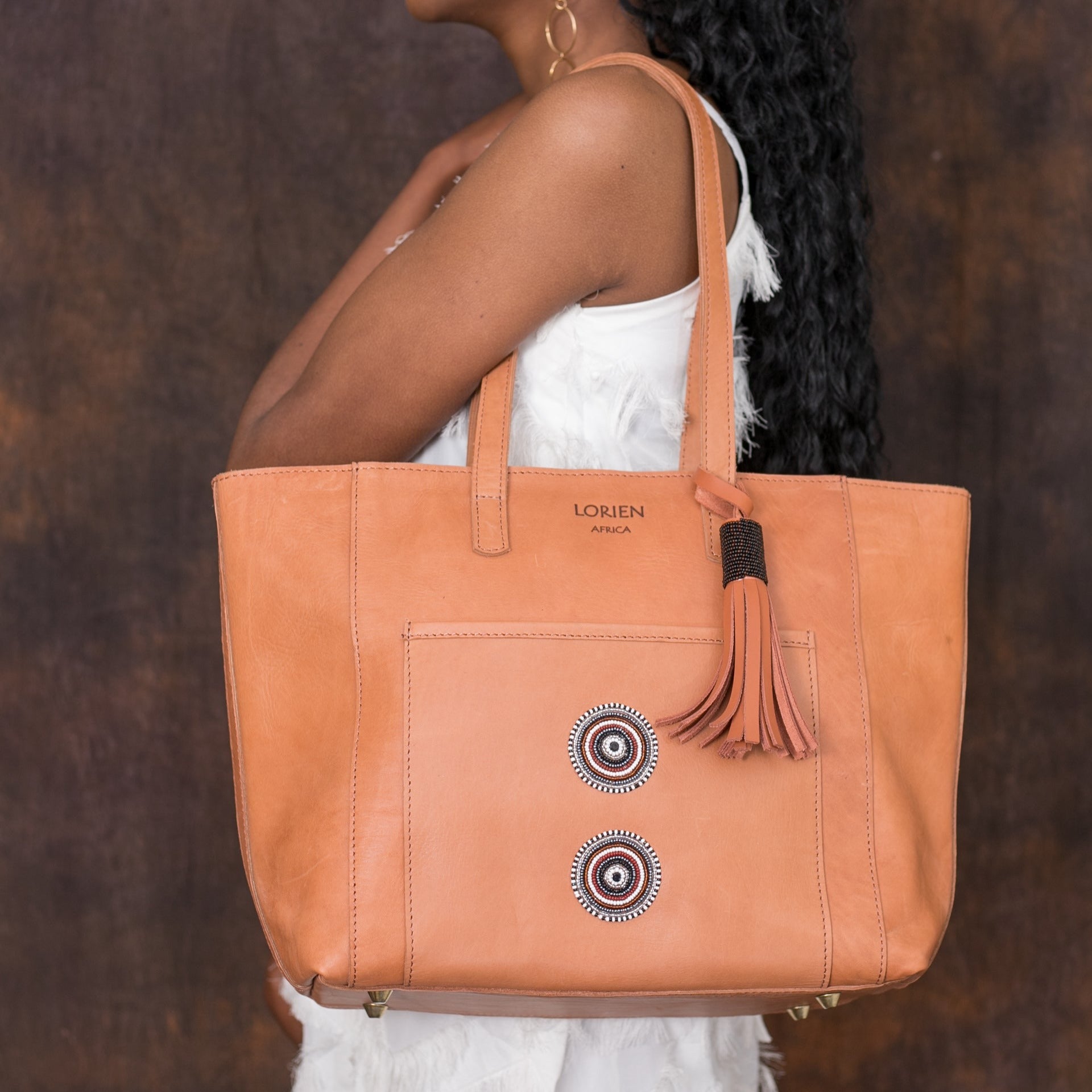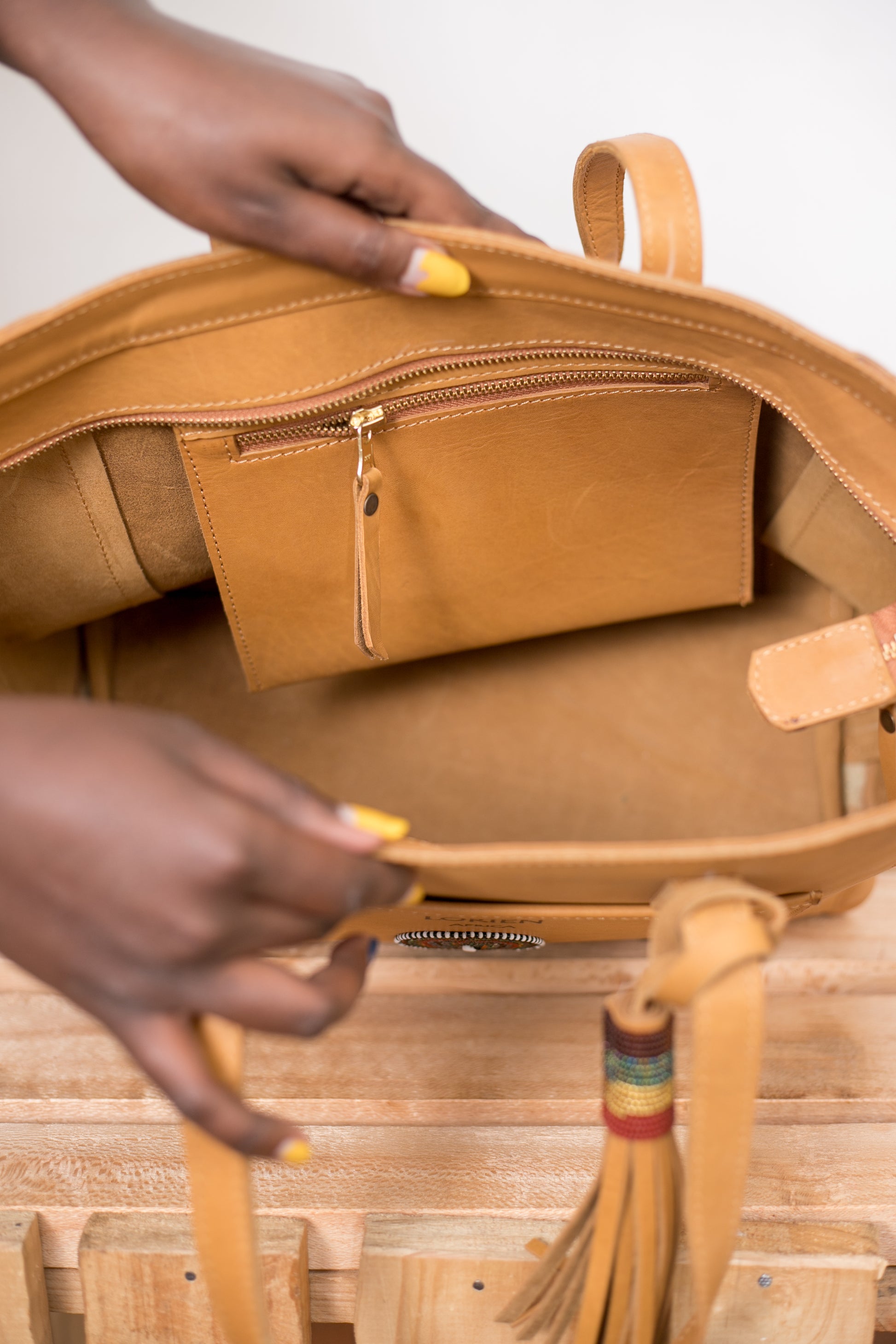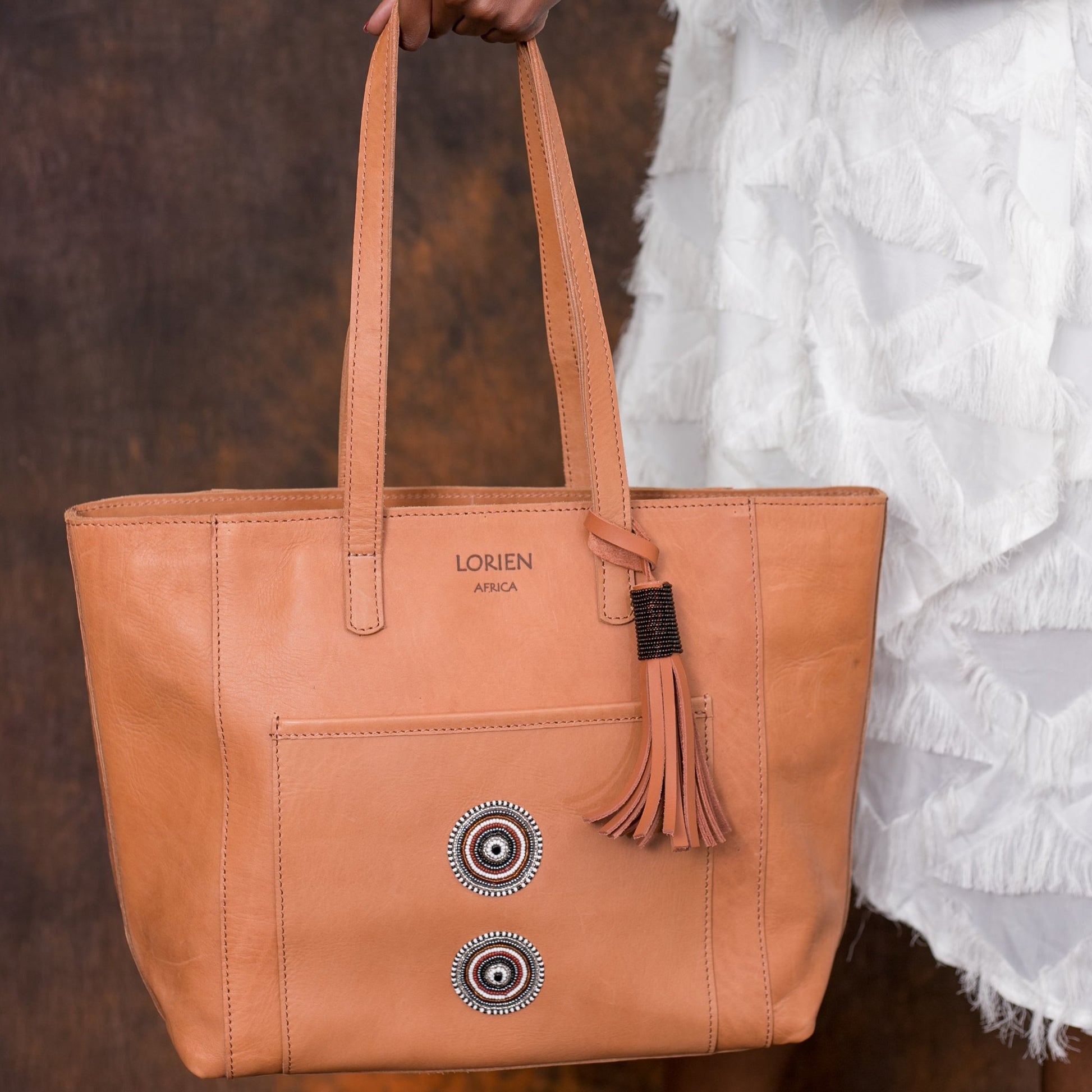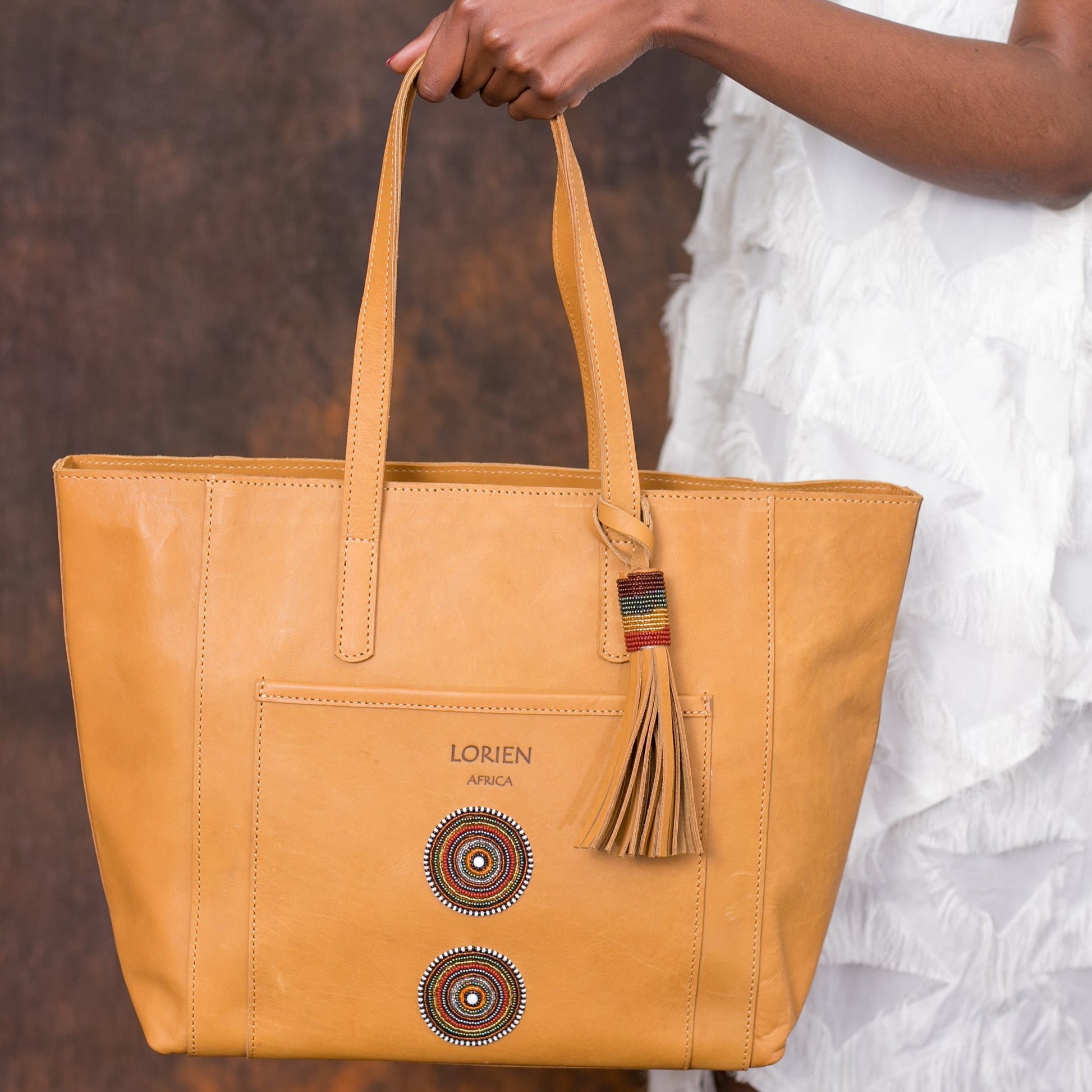 The Leather Bag is made from Top Grain Pull-Up Leather obtained from Free Grazing Maasai Cattle that are primarily bred for Beef; leather is a secondary by-product. Leather may exhibit tick marks and scars from thorns and injuries from wild animals